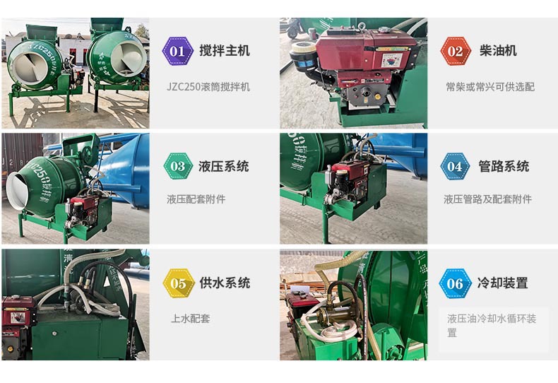 JZC250滚筒式柴油版混凝土搅拌机,广泛应用于电力不发达或架设电力线路不便捷的地区和现场。该设备由我厂独立研发生产,整机动力来源由柴油机单独提供,无其他额外动力辅助,动力转化效率高,有效地提高了机器的使用功率。