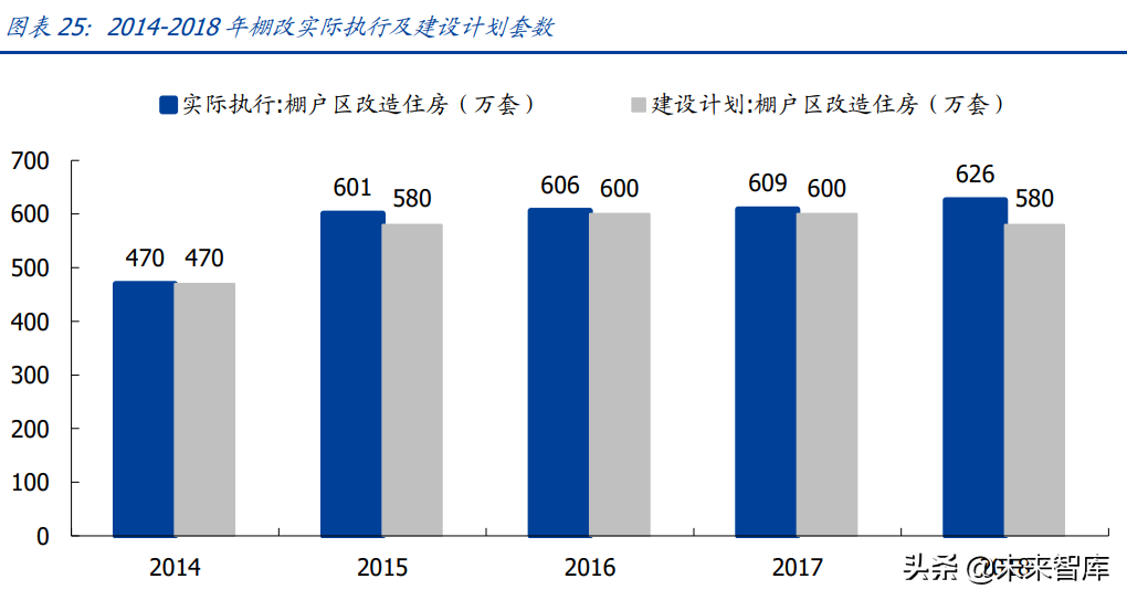棚改货币化拉动需求,国开行 PSL 工具提供资金支持。国务院于 2015 年明确了 2015-2017 年改造包括城市危房、城中村在内的各类棚户区住房 1800 万套的棚改三年 目标。2014-2018 年,我国共改造棚户区 2912 万套,相较 2008-2013 年的改造套数大 幅增加约 80%。2015 年 6 月,国务院颁布《关于进一步做好城镇棚户区和城乡危房改 造及配套基础设施建设有关工作的意见》,其中提出棚改补偿模式由实物货币安置并重转 向货币安置优先,棚改货币化安置比例快速提升,到 2017 年货币化安置比例已高达 60%。 为满足棚改资金需求缺口,央行于 2014 年 4 月设立 PSL(抵押补充贷款)创新型政策 工具。2015 年起,国开行棚改贷款及 PSL 提供资金规模显著扩张,为棚改提供了充裕资 金。
