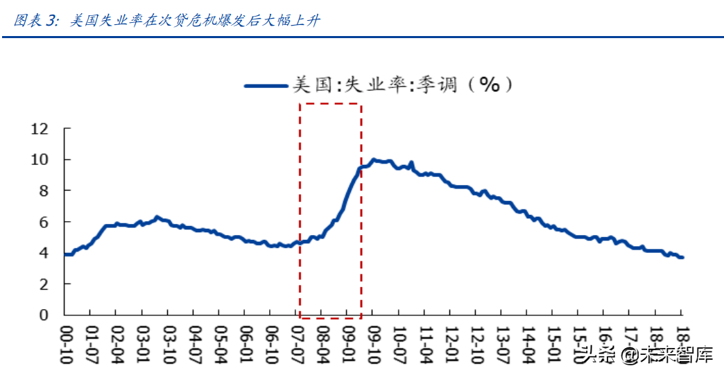 2008 年下半年起次贷危机蔓延全球。2008 年美国次贷危机爆发,冲击逐渐蔓延全球, 全球股市和各类资产价格剧烈下跌,金融机构消费信贷和投资信贷快速萎缩。2008 年 9 月 15 日雷曼兄弟的破产更加剧了危机的影响。除美国外,日本失业率也迅速提升,欧 元区,德法两国经济动力不足,南欧部分国家出现主权债务危机,西班牙、希腊失业率 超过 20%。