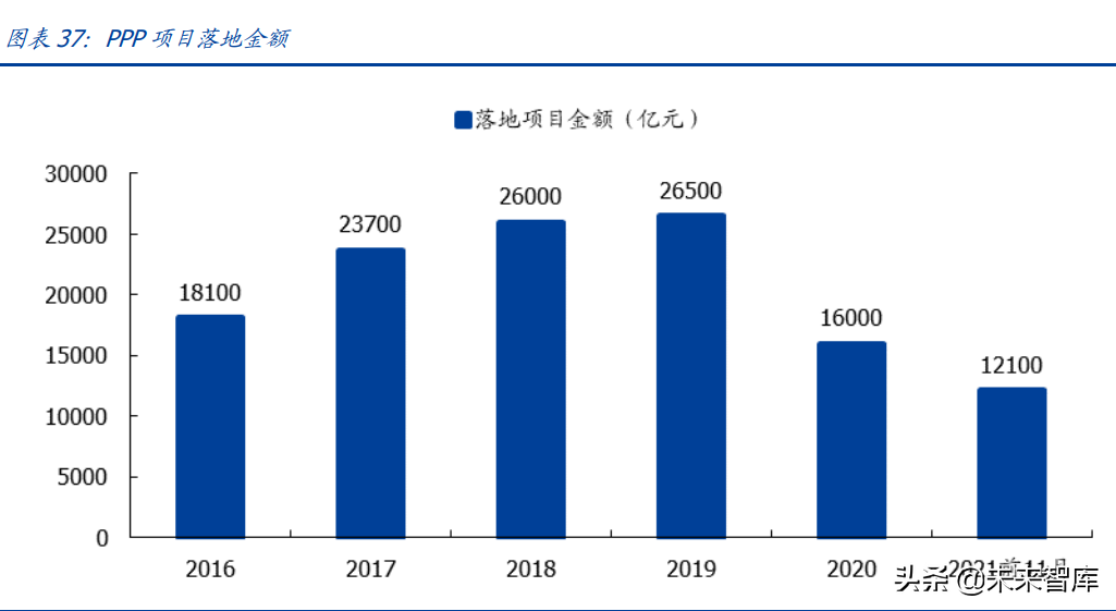 三是规范推进 PPP 发展,在系列规范措施告一段落后,PPP 进入平稳发展时期。2017 年以来随着 PPP 政策不断规范化,银行对 PPP 态度逐渐收紧。在 2018 年一季度,银行 考虑到 92 号文的清库措施可能会使部分 PPP 项目清出财政部库,因此对于 PPP 放贷存 在观望态度,导致 2018 年 PPP 项目落地速度持续放缓。2018 年 7 月国常会政策转向后,PPP 项目进入规范发展期,后续回归平稳增长。