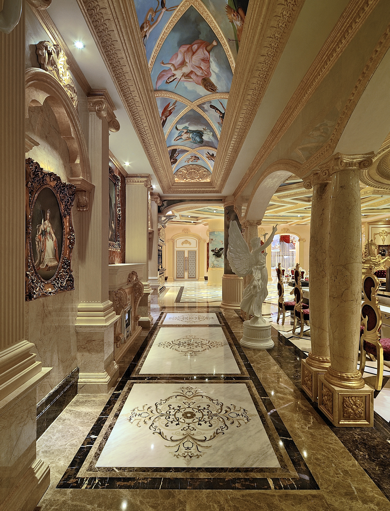 低调奢华,复古流畅。新古典风格起源于18世纪中期,根植于理性主义,摒弃了巴洛克和洛可可风格中的过度矫饰,而谋求几近失落的纯粹高贵风格的回归。而设计感是通过希腊式的简洁结构取得的,承袭了浪漫主义色彩。新古典风格装饰以青铜饰面采用扇型、叶板、玫瑰花饰、人面狮身像等,还将家具、石雕等带进了室内陈设和装饰之中。拉毛粉饰和大理石的运用,使室内装饰更讲究材质的变化和空间的整体性。