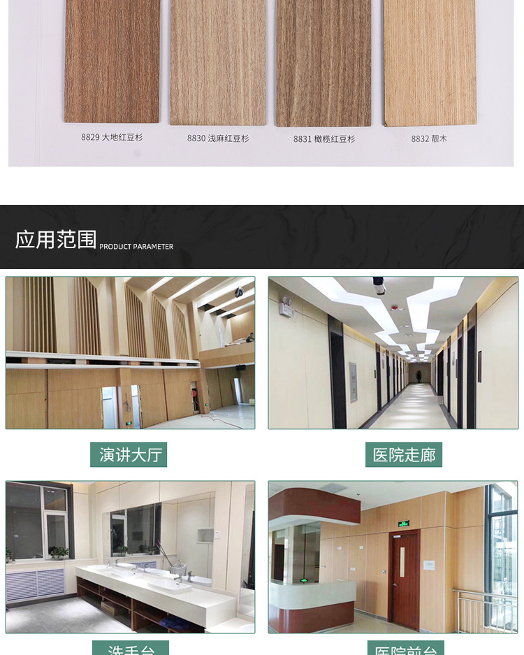 木纹冰火板防火装饰贴面板学校医院隧道装饰材料木饰面内墙洁净板