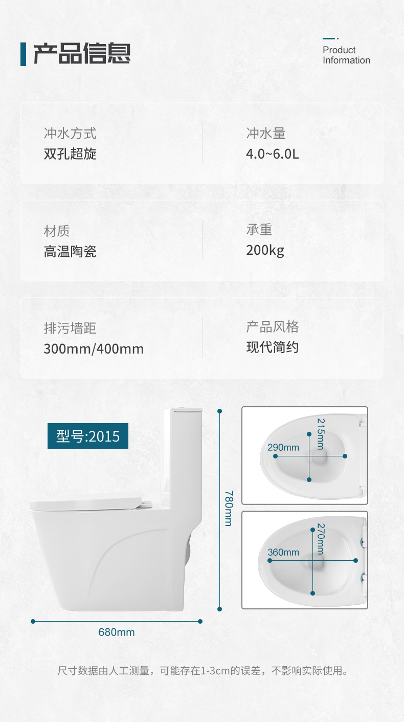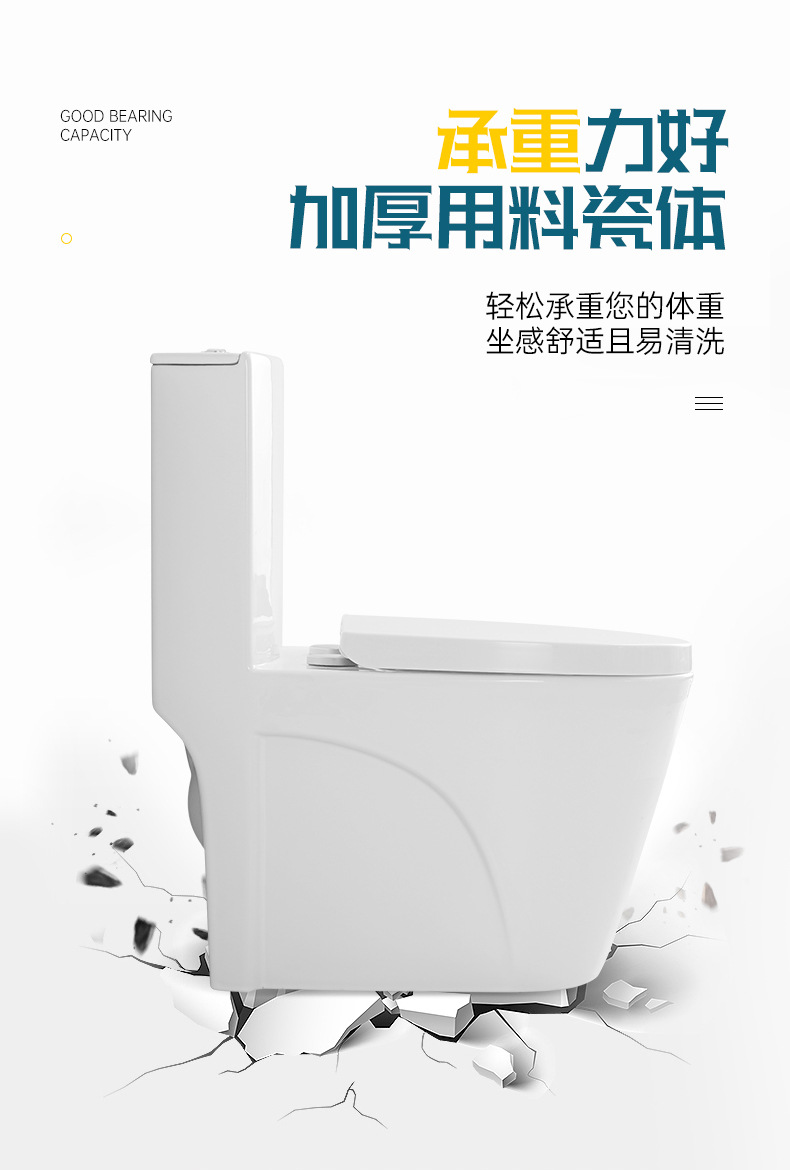 普通一体式坐便器酒店家用节水静音超漩式卫生间洁具陶瓷釉面马桶