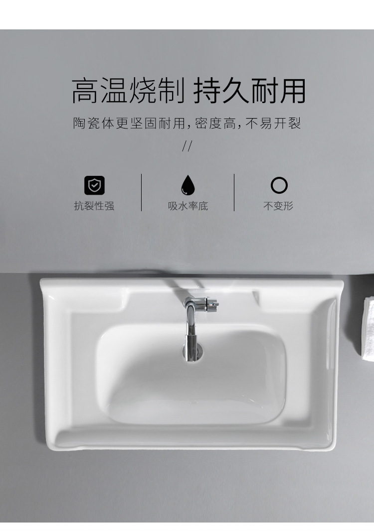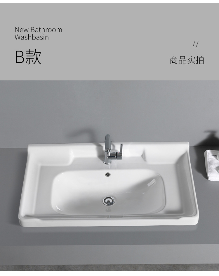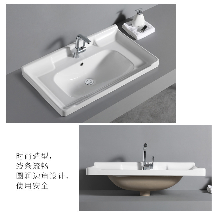 陶瓷浴室柜洗漱面盆中边简易卫生间洗手盆下嵌入式一体方形牛角盆